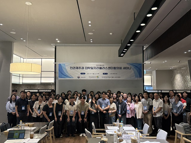 (전북=NSP통신) 김광석 기자 = 전주대학교(총장 박진배) 대학일자리플러스센터는 한국고용정보원, 전라제주권 대학일자리플러스센터를 운영하고 있는 14개 대학과 함께 11~12일 양일간 전주 신라스테이호텔에서 ‘2025년 전라제주권 대학일자리플러스센터협의회’를 개최했다고 밝혔다.