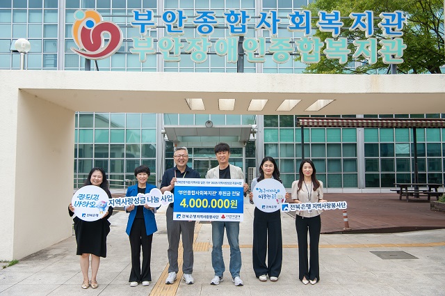 (전북=NSP통신) 김광석 기자 = JB금융그룹 전북은행지역사랑봉사단(공동단장 백종일 은행장, 정원호 노조위원장)은 부안종합사회복지관에서 지역사랑성금 400만원을 전달했다고 13일 밝혔다.