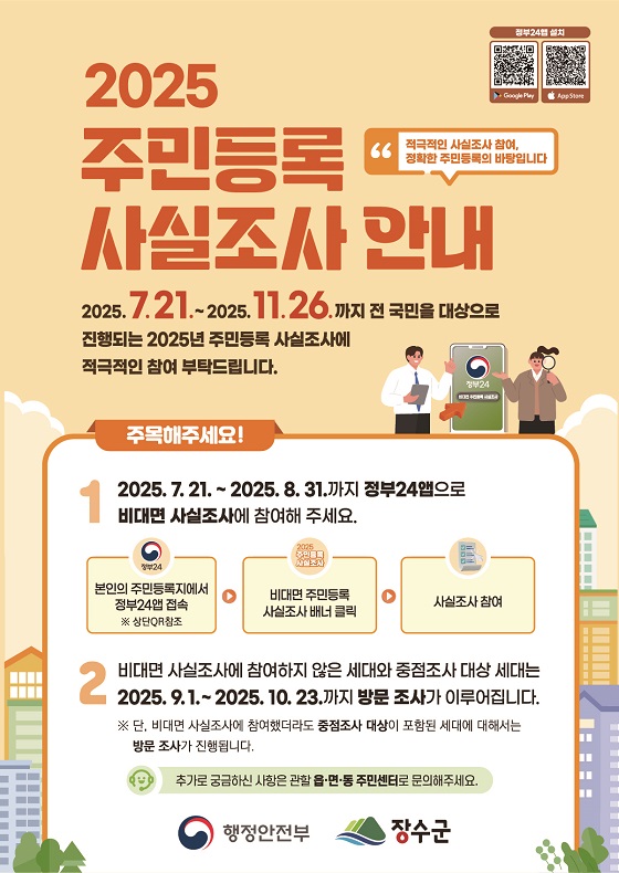 (전북=NSP통신) 김광석 기자 = 전북 장수군이 주민등록 사항의 정확성을 높이고 더욱 효율적으로 관리하고자 ‘2025년 주민등록 사실조사’를 시행중이다.