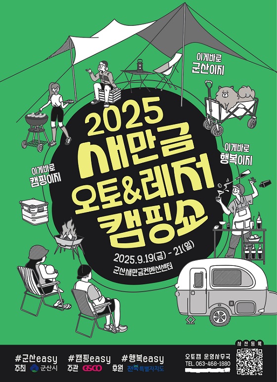 (전북=NSP통신) 김광석 기자 = 전북 군산시가 주최하고 지스코(GSCO)가 주관하며, 전북자치도가 후원하는 서해안권 대표 캠핑·레저 박람회 ‘2025 새만금 오토레저캠핑쇼’가 19~21일 3일간 군산새만금컨벤션센터에서 열린다.
