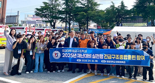 (전북=NSP통신) 김광석 기자 = 원광대학교(총장 박성태)가 지난 18일 익산소방서에서 실시한 2025년 재난 대비 실전형 긴급구조종합훈련에 응급구조학과 학생 전원이 참여해 현장 중심 교육 효과를 극대화했다.