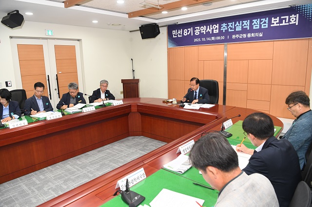 (전북=NSP통신) 김광석 기자 = 전북 완주군은 14일 유희태 군수가 확대간부회의를 통해 민선 8기 공약사업을 점검하고 주민과의 약속인 공약사업이 조속하게 추진될 수 있도록 총력을 기울일 것을 당부했다고 밝혔다.