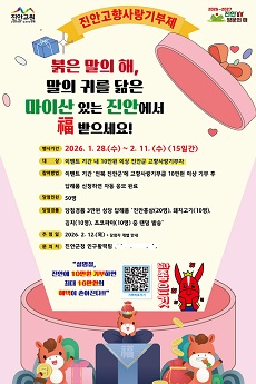 (전북=NSP통신) 김광석 기자 = 전북 진안군은 설 명절을 맞아 고향사랑기부제 활성화를 위해 진안군 고향사랑기부제 2026 설맞이 대박 이벤트를 진행한다고 밝혔다.