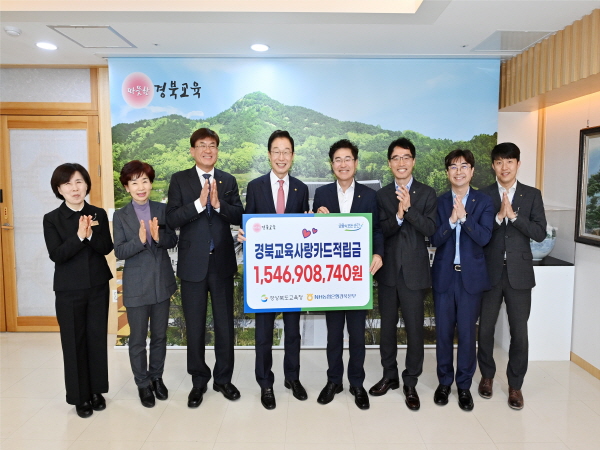 경북교육사랑카드는 경북교육청이 지난 2003년부터 NH농협은행, BC카드사와 협약을 체결한 법인 및 개인카드로 이번에 전달받은 적립금은 경북교육청과 산하기관(학교)의 법인카드 이용액의 일정 부분(카드 사용액 대비 1%)과 교직원의 개인카드 신규 발급에 따른 일정 금액을 적립해 조성된 것이다.