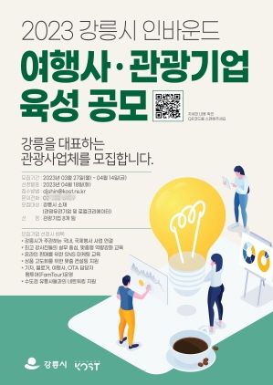 공모기간은 오는 27일부터 4월 14일까지며 신청대상은 강릉 지역 여행사, 외국인 개별관광 운영사, 여행플랫폼, 관광벤처, 관광콘텐츠 로컬크리에이터 등 관광 관련 사업체다.