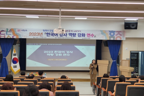 (경북=NSP통신) 조인호 기자 = 경상북도교육청(교육감 임종식)은 24일 경상북도교육청 경주한국어교육센터에서 한국어 강사의 수업 전문성 향상을 위해 한국어 강사, 한국어학급 전담 교원 37명을 대상으로 역량 강화 연수를 실시했다.