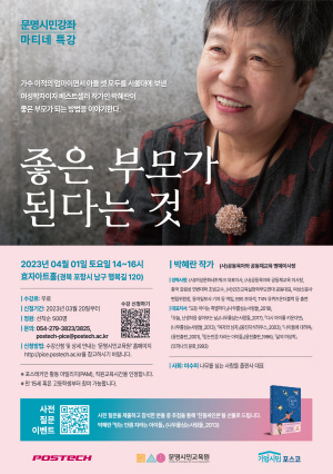 (경북=NSP통신) 최병수 기자 = 포스텍(포항공과대학교, 총장 김무환) 문명시민교육원은 오는 4월 1일 ‘좋은 부모가 된다는 것’이라는 주제로 마티네 특강을 진행한다.