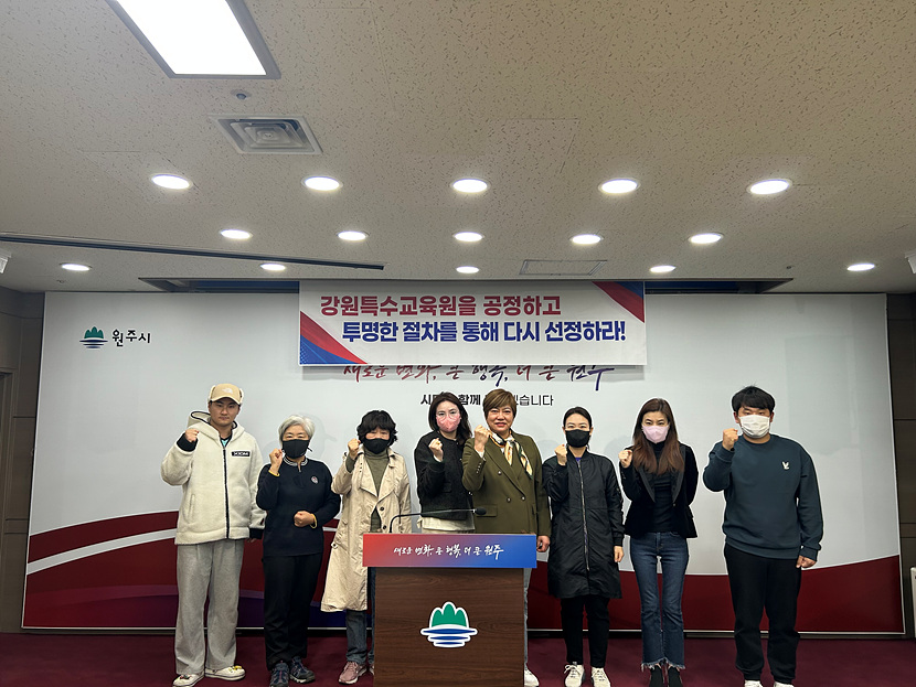 (강원=NSP통신) 조이호 기자 = 강원 원주시(시장 원강수) 한국민족미술인협회 원주지부(지부장 신구경)가 28일 시청 브리핑룸에서 기자회견을 열고 “강원특수교육원 설립지역을 재선정하라”고 촉구했다.