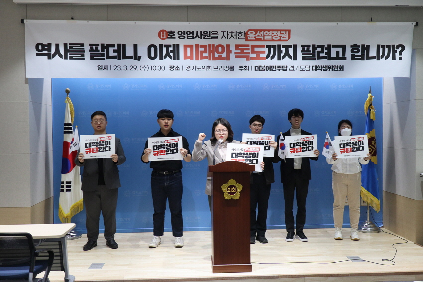 더불어민주당 경기도당 대학생위원회는 윤석열 정부의 굴종 외교와 일본의 역사교과서 왜곡에 대항해 다양한 활동을 전개해 나갈 계획이다.
