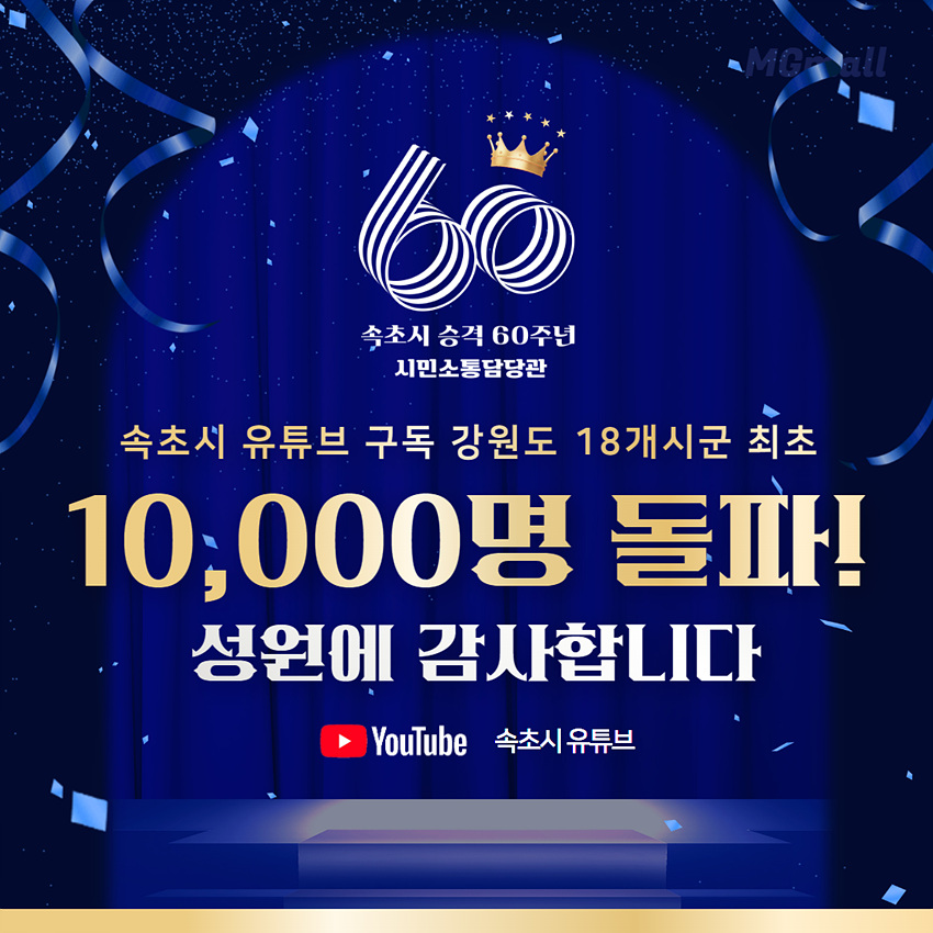 (강원=NSP통신) 조이호 기자 = 강원 속초시(시장 이병선)가 강원도 18개 시군 중 최초로 유튜브 구독자 1만명을 돌파했다.