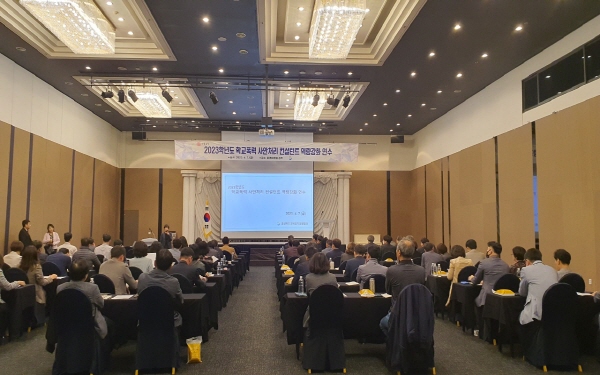 (경북=NSP통신) 조인호 기자 = 경상북도교육청(교육감 임종식)은 7일 더케이호텔 경주에서 학교폭력 사안처리 컨설턴트 80명을 대상으로 학교폭력 예방 및 사안처리에 대한 이해 증진을 위한 연수를 실시했다.