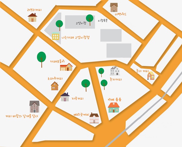 다회용컵 활성화 사업에 참여 중인 고양시청 주변 카페 위치도 (사진 = 고양시)