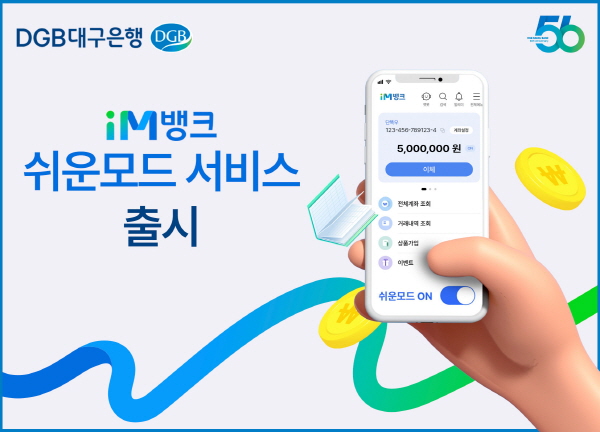 DGB대구은행 관계자는 “iM뱅크 ‘쉬운모드 서비스 실시로 고령층 및 쉽고 큰 화면 보기가 편한 고객들의 편의가 증진되길 바라며, 앞으로도 금융소외계층을 위한 다양한 서비스를 개발하겠다”는 뜻을 전했다.