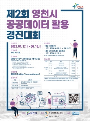 (경북=NSP통신) 최병수 기자 = 영천시(시장 최기문)는 공공데이터를 활용한 아이디어 발굴과 데이터경제 활성화를 위해 ‘2023년 제2회 영천시 공공데이터 활용 경진대회’를 개최한다.