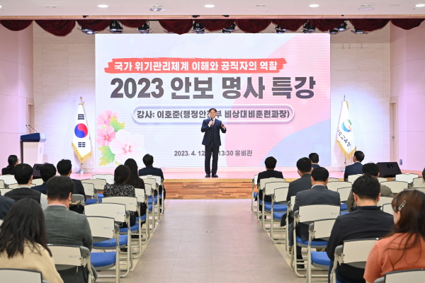 이호준 행정안전부 비상대비훈련과장을 강사로 초빙해 ‘국가위기관리체계 이해와 공직자의 역할’ 이라는 주제의 특강을 진행했다.