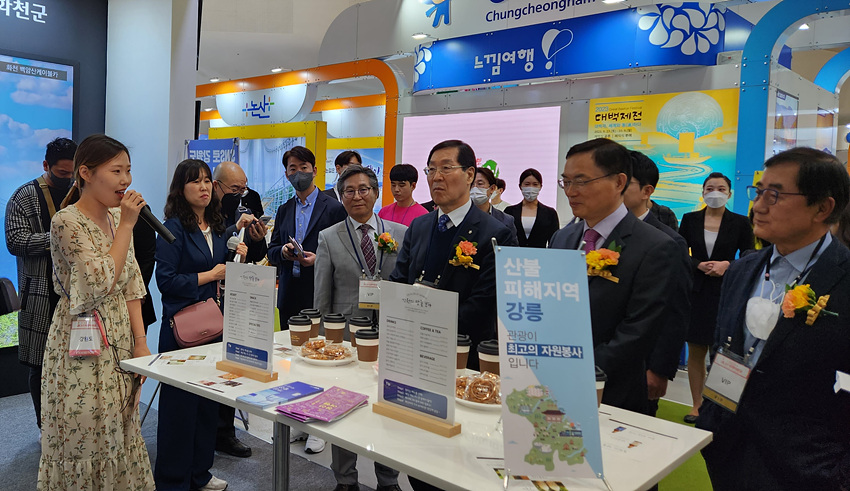 현재 서울 동대문디자인플라자에서 문화체육관광부 주최로 진행되고 있는 2023 내나라 여행박람회에 참가해 ‘산불피해지역 강릉, 관광이 최고의 자원봉사입니다’라는 배너기를 걸고 행사참가자들에게 강릉관광을 적극 홍보하고 있다.