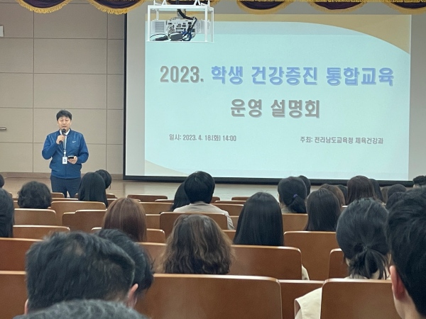 도교육청은 이날 2023년 학생건강증진 통합교육 운영 방향 안내 및 광양중진초등학교의 ‘건강체중 도전 비탈길 프로젝트’ 운영 사례 나눔을 통해 다양한 교육활동 운영 방안을 설명했다.