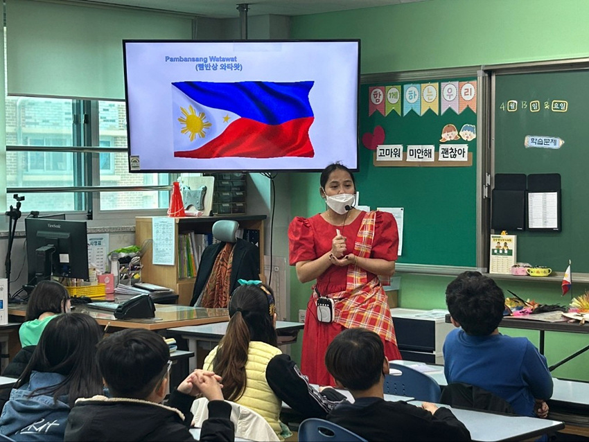 이번 교육은 다문화 가족센터와 연계해 베트남, 일본, 필리핀, 중국의 다문화 강사가 학교로 직접 찾아와 각 나라를 소개하고 나라별 다양한 문화를 체험해 보는 시간으로 진행됐다.