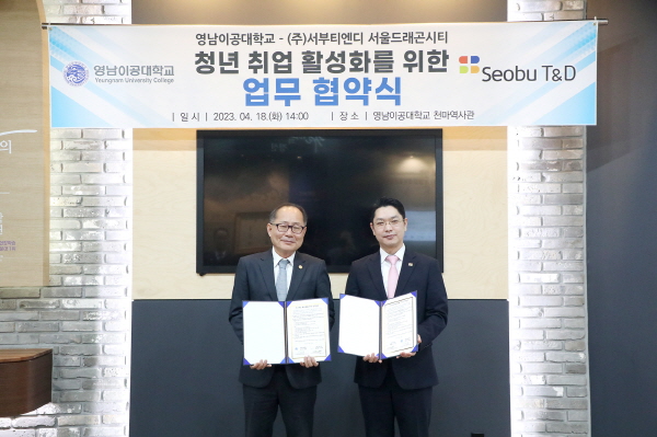 (대구=NSP통신) 최병수 기자 = 영남이공대학교(총장 이재용)는 지난 18일 천마스퀘어 2층 역사관에서 주식회사서부티엔디 서울드래곤시티와 청년취업 활성화를 위한 업무협약을 체결했다.