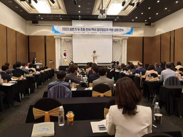 이번 연수회는 유·초등 교원의 인사 업무 처리와 개정된 인사 법규, 교육공무원 승진 규정 등에 대한 심화 연수 및 수업과 2022 개정 교육과정의 이해를 통하여 함께 배우고 성장하는 행복교육 실천을 위한 노력으로 이뤄졌다.
