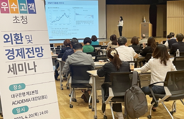 (대구=NSP통신) 최병수 기자 = DGB대구은행(139130)은 DGB대구은행 수성동 본점에서 ‘외환 및 경제전망 세미나’를 개최했다.