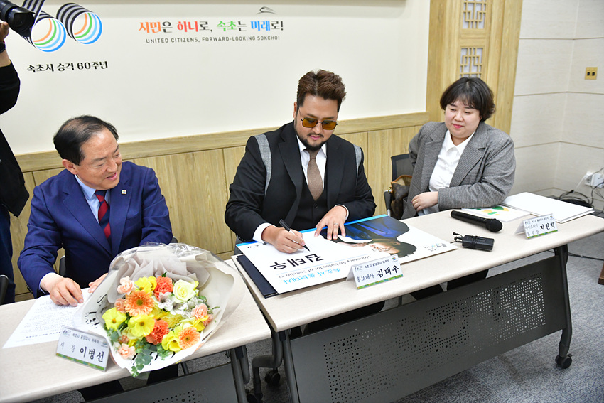 이병선 시장은 “시 승격 60주년이 되는 시점에 전 국민 남녀노소에 사랑받는 김태우 씨와 소중한 인연을 맺게 돼 기쁘다”며 “앞으로 시의 미래 100년을 위한 새로운 얼굴로써 문화·관광뿐 아니라 속초의 멋과 맛, 아름다움을 널리 알려주길 부탁드린다”고 말했다.