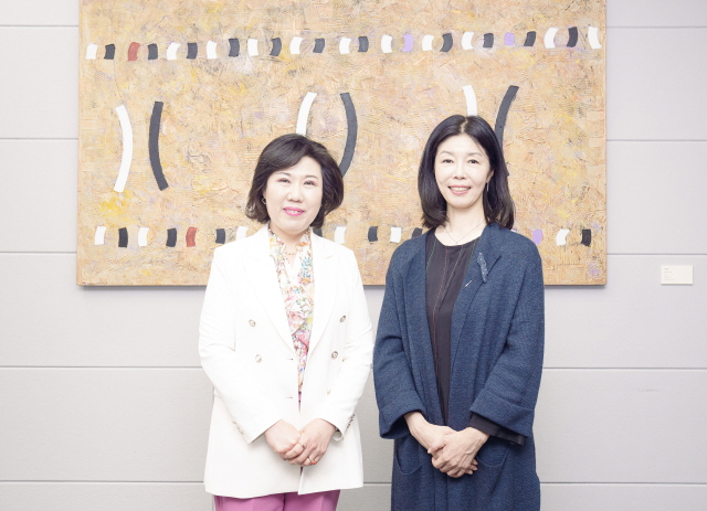 NSP통신-24일 오후 성남아트센터 대표실에서 성남문화재단 서정림 대표(오른쪽)와 오찬숙 성남교육지원청 교육장이 학교문화예술교육 현안과 발전 방향 등을 논의하는 차담 가운데 기념촬영을 하고 있다. (사진 = 성남문화재단)