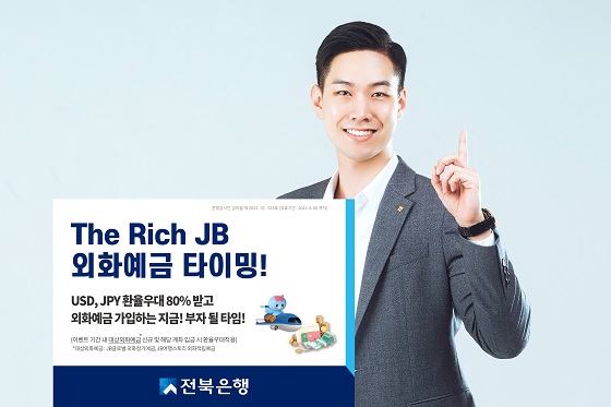 (전북=NSP통신) 김광석 기자 = JB금융그룹 전북은행(은행장 백종일)은 외화를 통한 재테크 및 자산관리를 위한 ‘The Rich JB 외화예금 타이밍!‘이벤트를 26일부터 오는 7월 말까지 진행한다.