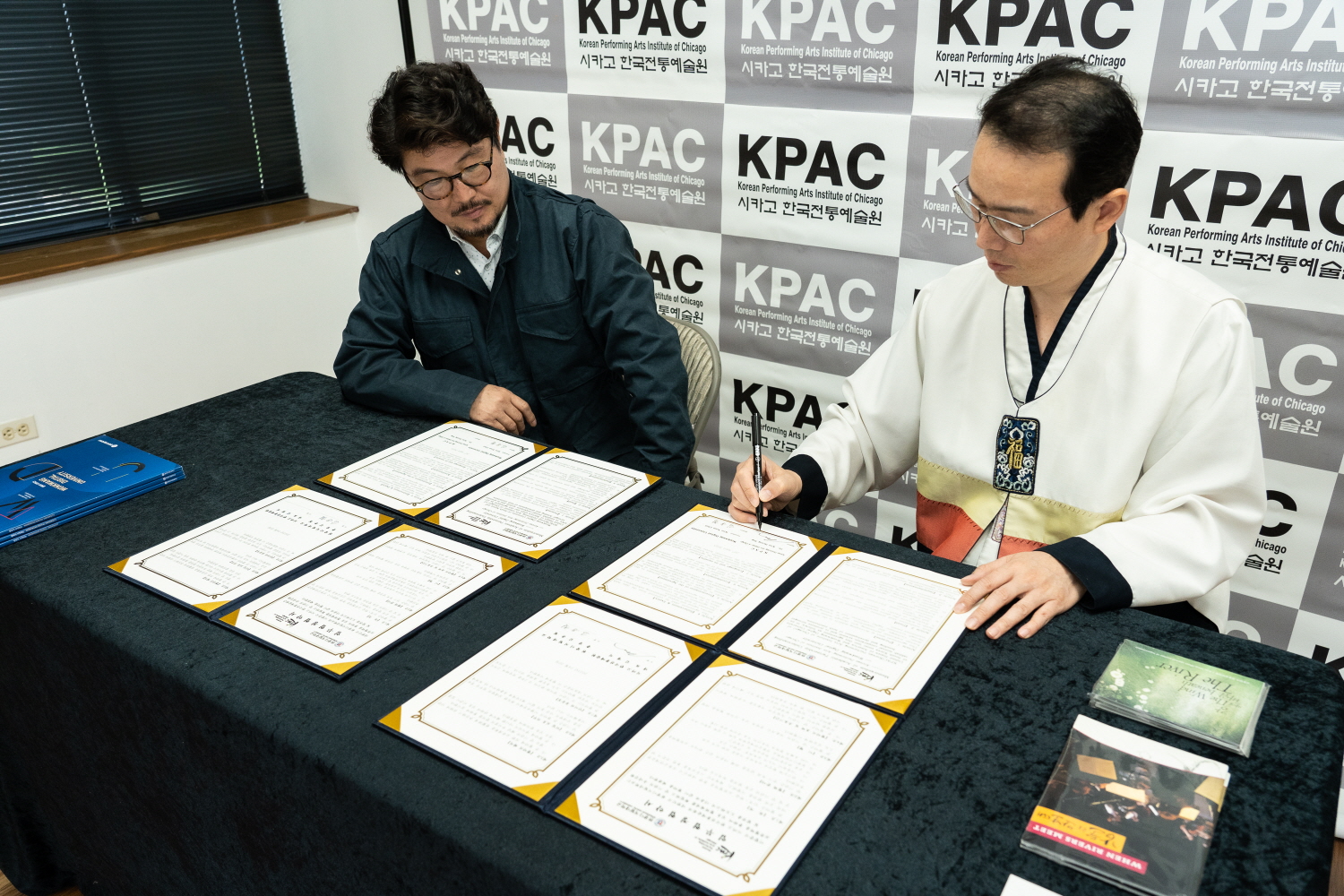 김병석 시카고 한국전통예술원 대표가 협약서에 서명을 하고 있다. (사진 = 원광디지털대학교)