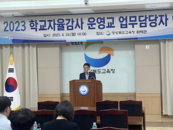 (경북=NSP통신) 조인호 기자 = 경상북도교육청(교육감 임종식)은 지난 24일 화백관에서 ‘2023 학교자율감사 운영교 업무 담당자 연수’ 를 실시했다고 밝혔다.