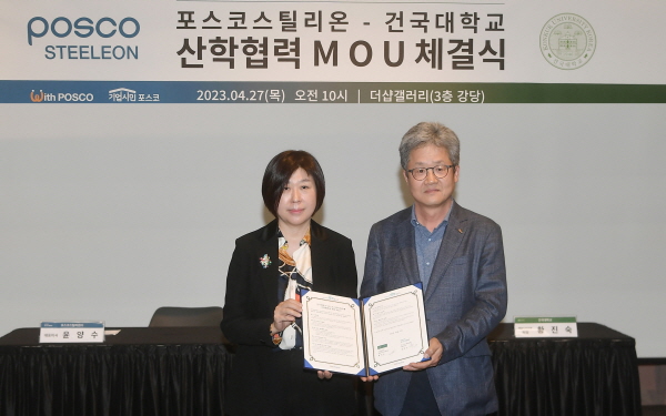 (경북=NSP통신) 최병수 기자 = 포스코스틸리온(058430)과 건국대학교가 최신 트렌드를 반영한 컬러강판 디자인 개발을 위해 힘을 모은다.
