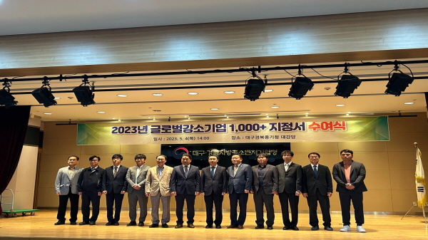 (경북=NSP통신) 조인호 기자 = 경상북도는 도내 기업 9개사가 중소벤처기업부 주관 글로벌 강소기업 1000+ 프로젝트 강소단계에 선정되어 4일 대구경북지방중소벤처기업청에서 지정서 수여식을 가졌다.