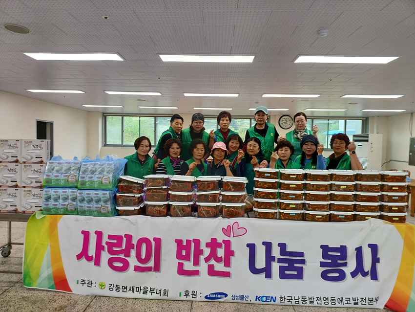 강동면 부녀회(회장 이보은)회원들은 7일 강동면 복지회관에서 삼성물산과 한국남동발전영동에코발전본부와 함께 직접 담근 김치와 반찬(3종) 및 간식을 관내 어르신 60여 세대에 전달했다.
