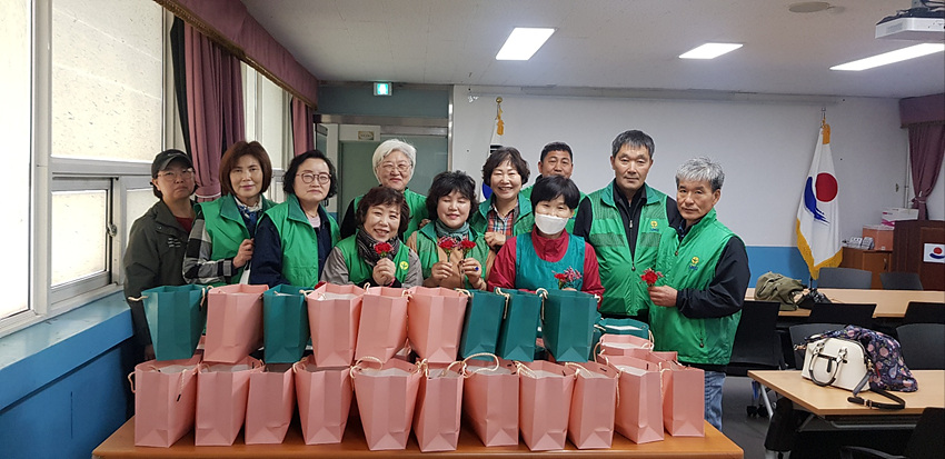 또한 옥천동 새마을협의회(회장 김충식)·부녀회(회장 유광희)는 카네이션을 달아 줄 가족 없이 외로운 시간을 보내는 관내 어려운 독거어르신 50가구에 카네이션을 달아드리고 회원들이 손수 포장한 떡을 같이 전달하는 등 따뜻한 마음을 전달했다.