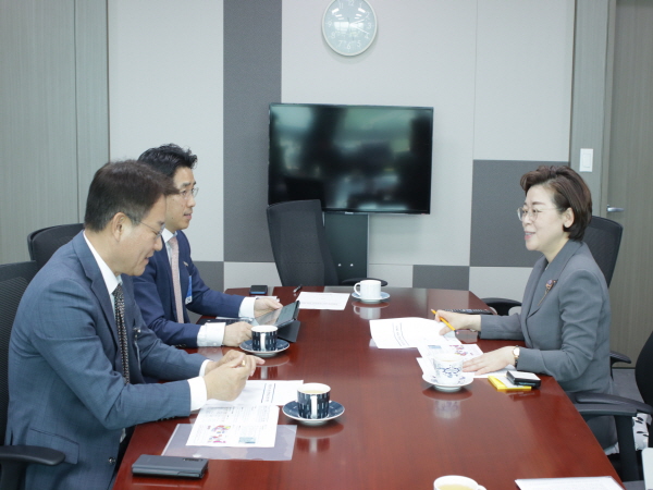 NSP통신-김정재 의원(국민의힘, 포항 북구)은 10일 김태옥 한국전력 전력그리드 부사장을 만나 포항 이차전지 유치기업 지원을 위한 산업단지 인프라 조기 구축을 건의했다. (사진 = 김정재의원실)