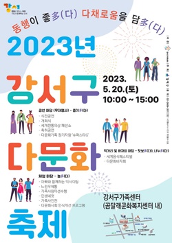 (서울=NSP통신) 강은태 기자 = 서울시 강서구(구청장 김태우)가 오는 20일 오전 10시부터 오후 3시까지 화곡동 곰달래문화복지센터에서 코로나19 이후 4년 만에 ‘2023 다문화 축제 및 가족행사’를 개최한다.