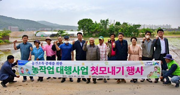 (광주=NSP통신) 김용재 기자 = 농협광주본부(본부장 고성신)는 “평동농협(조합장 최삼규)이 22일 광산구 지죽동 일대에서 풍년을 기원하는 첫 모내기 행사를 실시했다”고 밝혔다.