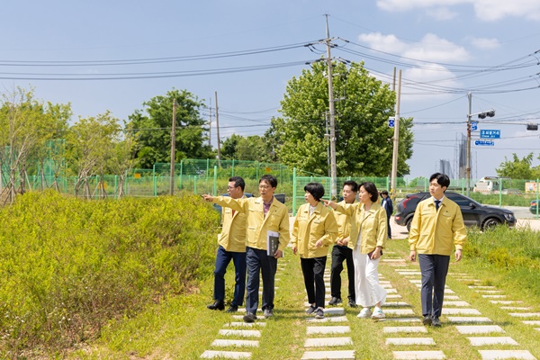 먼저 공항동 식목일 나무심기 행사 식재지 현장은 지난 4월 5일 관내 기업들과 각종 단체 및 주민들 약 500명이 참여해 2400그루를 식재한 곳으로 현장을 방문한 의원들은 해당 부서로부터 관리 방안 등에 대해 보고 받고 식재 상태 등 민원 사항 체크 및 지주목 점검 등 식재지 현황을 꼼꼼히 살폈다.