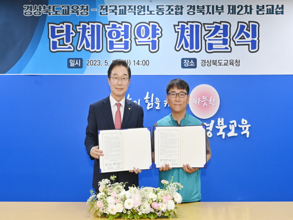또한 이번 단체협약 체결을 계기로 경북교육청과 전교조 경북지부는 앞으로 연 2회 교육정책과 교원 지위 향상 등 교육현장의 다양한 사안을 바탕으로 노사간 정책협의회를 열어 긴밀한 소통을 지속적으로 이어가기로 합의했다.