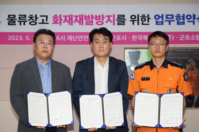(경기=NSP통신) 정희순 기자 = 경기 군포시(시장 하은호)는 24일 시청 재난상황실에서 물류창고 화재재발방지 및 피해 최소화를 위해 한국복합물류 및 군포소방서와 3자간 업무협약(MOU)을 체결했다.