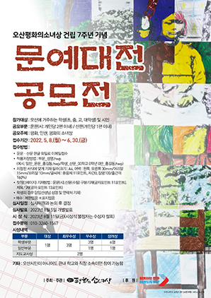 한편 오산평화의소녀상 문예대전은 왜곡된 역사를 바로잡고 미래세대에 대한 평화, 인권, 희망의 의미를 일깨우기 위해 지난 2016년부터 문예대전과 회화대전을 격년으로 진행하고 있다.