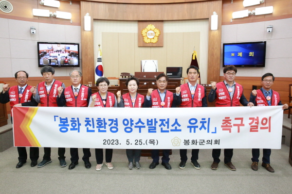 봉화군의회는 친환경 양수발전소 유치가 지역 경제 활성화와 인구 증가 및 일자리 창출로 봉화군 발전의 마중물 역할을 할 것임을 깊이 인식하면서 친환경 양수발전소 유치를 강력히 촉구했다.