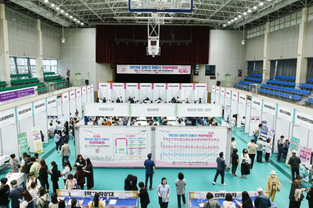(경기=NSP통신) 정희순 기자 = 경기 의왕시(시장 김성제)와 의왕고용복지플러스센터가 공동 주최한 ‘2023년 상반기 의왕시 취업박람회’가 25일 의왕시 국민체육센터에서 개최됐다.