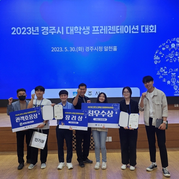(경북=NSP통신) 최병수 기자 = 위덕대학교가 지난달 30일 경주시가 지역 대학생을 대상으로 다양하고 창의적인 시정 정책을 위해 개최한 '경주시 대학생 프레젠테이션 대회' 에 참가해 최우상을 수상했다.