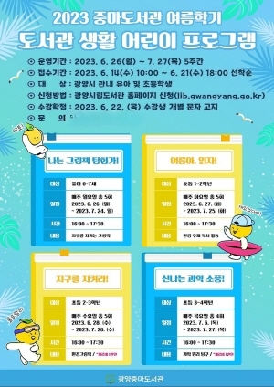 2023 여름학기 도서관 생활 어린이 프로그램 수강 신청 포스터 (이미지 = 광양시청)