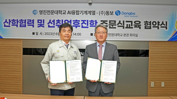 이번 협약으로 영진전문대 AI융합기계계열과 동보는 상호 협력을 통해 직업계고교 우수 자원을 추천받아 채용을 시작으로, 기업에서 요구하는 직무교육을 병행하는 선취업후진학 주문식교육을 수행한다.