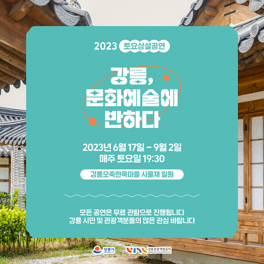 (강원=NSP통신) 조이호 기자 = 강원특별자치도 강릉시(시장 김홍규) 강릉관광개발공사(사장 강희문)가 오는 17일부터 ‘토요상설극장, 강릉 문화예술에 반하다’를 본격적으로 운영한다.