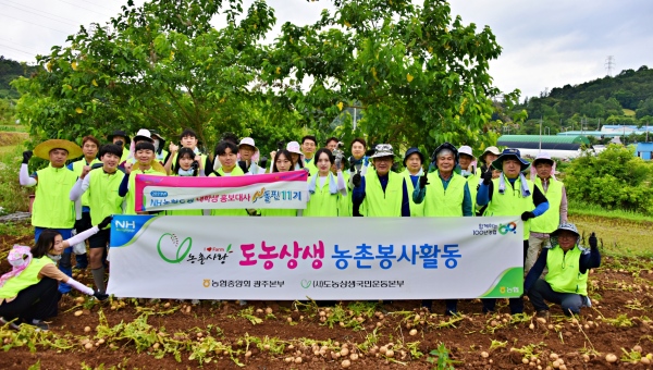 (광주=NSP통신) 김용재 기자 = 농협광주본부(본부장 고성신)는 22일 “범 농협 함께하는 농촌봉사단이 광주시 북구 운정동에 위치한 광주농협(조합장 김순택) 관내 감자재배 농가를 찾아 농촌 일손돕기를 실시했다”고 밝혔다.