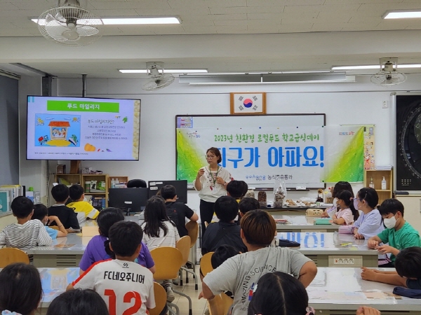 교육은 초등학교 1개교당 2회씩 운영되는데, 1회차는 ‘건강한 식생활’ 이론교육과 ‘상자 텃밭 만들기’ 실습으로 진행되며, 2회차는 ‘푸드마일리지와 로컬푸드’ 이론교육과 ‘버섯 키트 만들기’ 실습으로 진행된다.