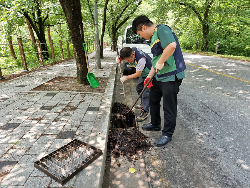점검에서는 매년 반복적으로 침수되는 저지대 구간, 주요 도로변과 취·정수장 등 관할 시설물을 포함해 70여 개소를 중점적으로 추진했으며 침수의 주원인이 되는 담배꽁초, 낙엽 등 퇴적물을 제거하고 유수 흐름에 지장이 없도록 준설 작업을 실시했다.
